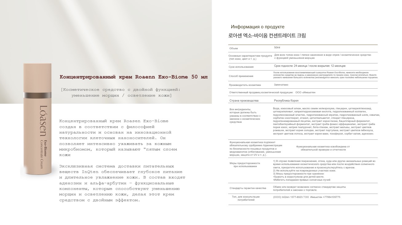 Loasen Exo-Biome Concentrate Cream Код продукта 547 Приобрести продукт Информация о продукте Информация о доставке Loasen Exo-Biome Concentrate Cream
