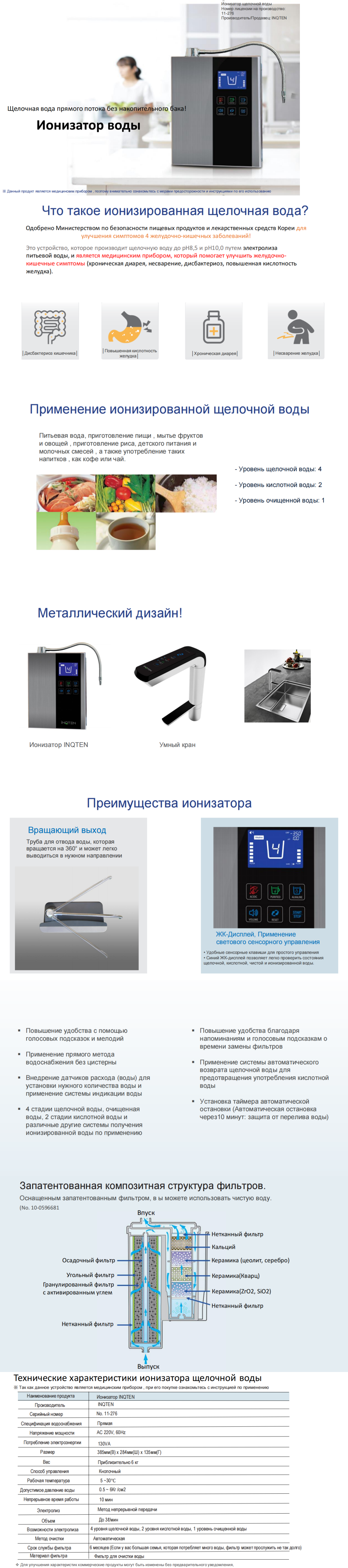 Water Ionizer Код продукта I-01 Приобрести продукт Информация о продукте Информация о доставке Water Ionizer